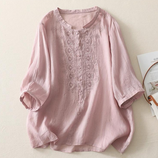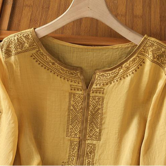 Cotton Floral Embroidered Comfortable Boat Neck Shirt